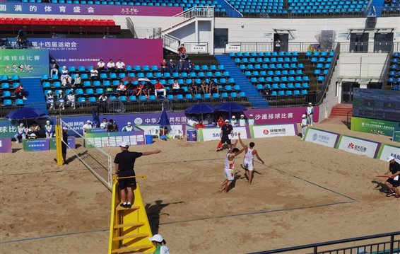 2021年9月17日-23日,中华人民共和国第十四届全国运动会沙滩排球青年组比赛在陕西省渭南市大荔县沙苑沙滩排球馆举行,共有全国青年男子组16支运动队参加本次决赛阶段赛事。